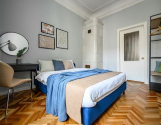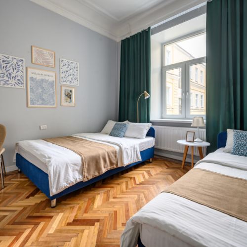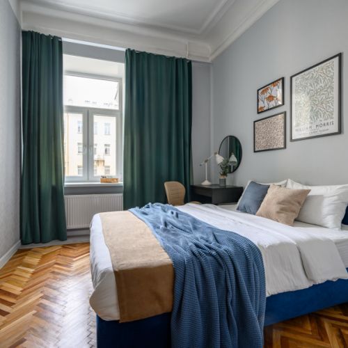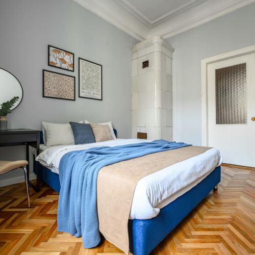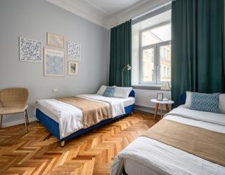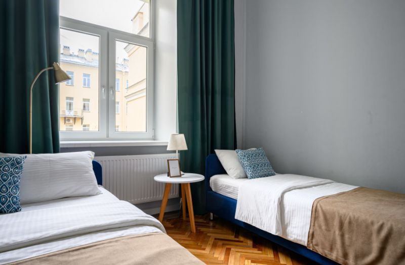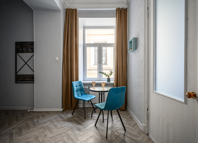 Апартаменты расположились в пятиэтажном историческом здании на набережной реки Мойка. В распоряжении гостей двухкомнатный 7-местный номер со старинной изразцовой печью. Апартаменты оснащены санузлом с ванной, кухней с газовой плитой, есть электрочайник, микроволновая печь и холодильник. Среди прочих удобств – стиральная машина, телевизор и высокоскоростной интернет.